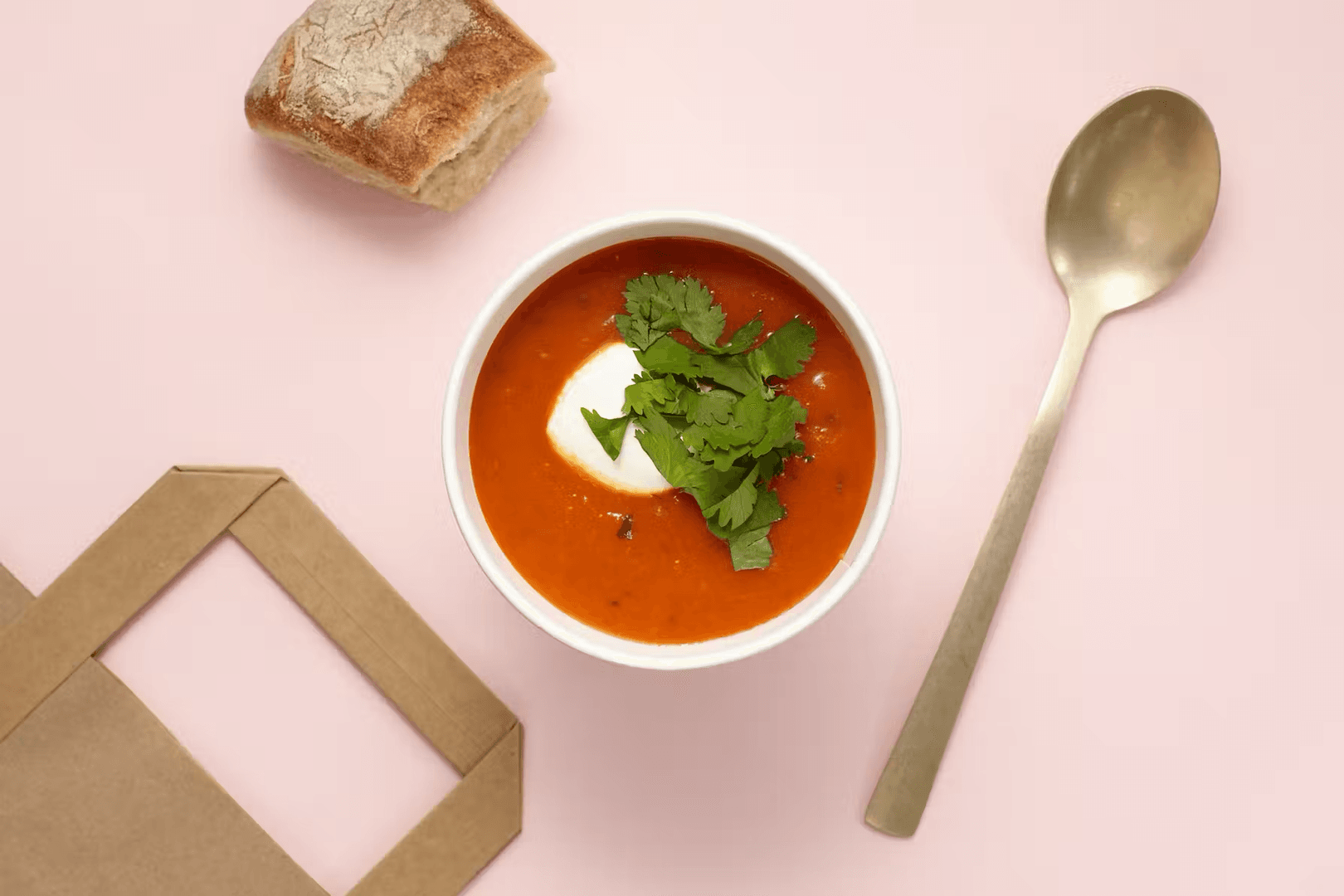 - Doe de koriander bij de soep en pureer het glad met een staafmixer. Breng op smaak met sojasaus.